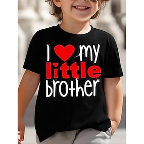100 % bomull Barn Gutt Svart Hvit Rød Hjerte Grafisk Bokstaver T skjorte Bluse Crew-hals Kortermet utendørs Hverdag Mote Gatemote Designer Printer Sommer