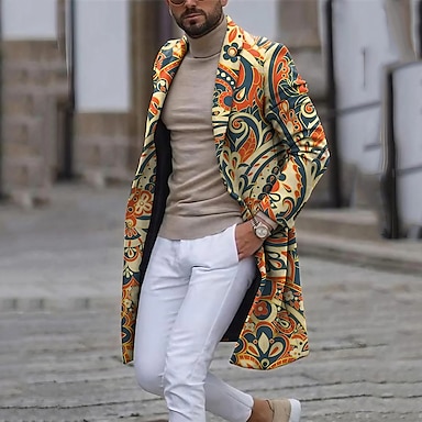 Herre Blomstret Totem Vinterfrakk Ytterfrakk Frakk Hold Varm Bekvem Pustende Årgang Forretning Stamme Arbeid Arbeidsklær Ut på byen Lomme Trykt mønster Høst vinter Aftæpning Langermet Aprikos