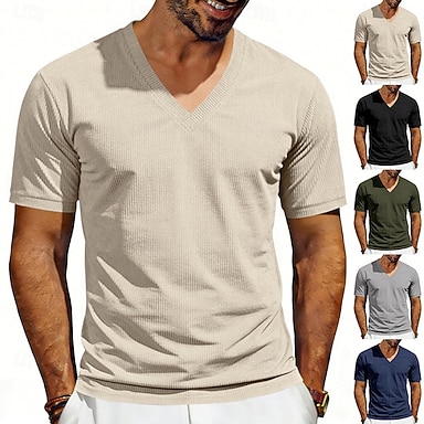Herre T skjorte Kordfløyel skjorte Kortermet skjorte T-skjorte Kortermet V-hals Sommer Vår عادي Gatemote Stilfull Fritid Jacquard Daglig utendørs Feriereise Svart Navyblå Kakifarget Topp T-skjorte