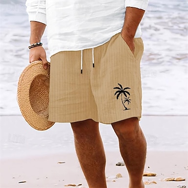 Herre Sommershorts Strandshorts Casual shorts Lomme Snorer Elastisk midje Kokosnøttre Komfort Pustende Kort Ferie Feriereise Strand Hawaiisk Bohem Hvit Himmelblå