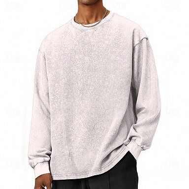 Herre Genser Distressed hettegenser Aprikos Svart Rosa Militærgrønn kaffe Crew-hals عادي Avslappet Daglig Ferie Årgang Retro Rød Høst Vinter Klær Gensere Gensere