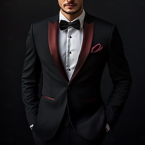 Menn Fest Bryllup Smokings Svart Rød Helfarge Standard passform 3 deler sett Enkelt Brystet Enn-knapp