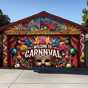 Mardi gras Garasjeportdeksel Stor opphengning Maske Fjær Luksus 3D Party Utendørs Bakgrunner for skyting Inngangsdør Maskerade Hjemmedekor
