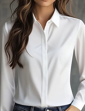 Dame Skjorte Elegant Pent Satengtopp Knapper Helfarge Stilfull Grunnleggende Fritid Langermet Skjortekrage Vanlige topper Daglig Ut på byen Hvit Gul Lilla Brun Vår Høst