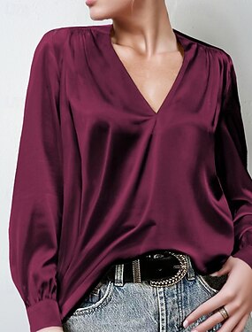 Dame Skjorte Elegant Pent Satengtopp Rynket عادي Moderne Fritid Langermet V-hals Vanlige topper Daglig Ferie Ut på byen Svart Hvit Gul Rosa Vin Høst