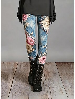 Dame Leggings Koselige leggings Ferie Årgang Etnisk stil Full lengde Høy Midje Blomstret Grafisk Printer Bekvem Elastisk Avslappet Daglig Feriereise Blå Vår Høst Slank Fasong