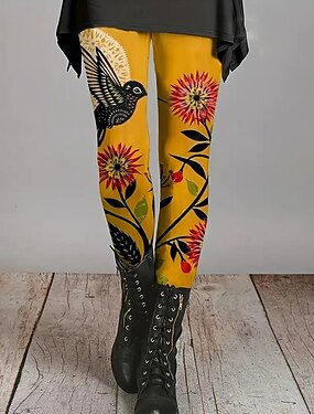 Dame Leggings Koselige leggings Ferie Årgang Etnisk stil Full lengde Høy Midje Blomstret Grafisk Fugl Printer Bekvem Elastisk Avslappet Daglig utendørs Grå Vår Høst Slank Fasong