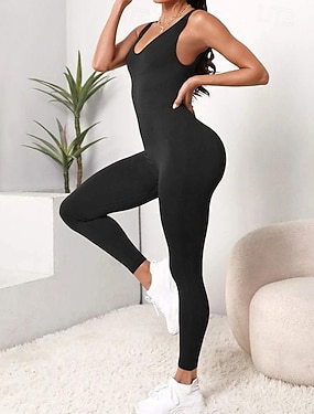 Dame Scrunch Yoga-jumpsuit Treningsjumpsuits Midjekontroll Høy Midje Treningsstudio Dans Treningsklær Bunner Helfarge Svart Høst sport Sportsklær Tett passform