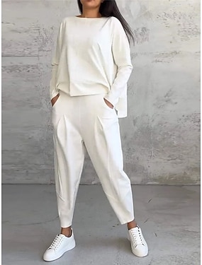 Kvinnenes 2-delte sweatshirt treningsdrakter langermet crew neck mote streetwear daglig ensfarget uformell daglig svart hvit rosa sommer vanlig passform