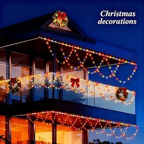138LED Lyslenker Takrender Sol/USB Drevet Lys med 8 Moduser Jul Bryllup Høytidsvegg Gjerde Veranda og Hagedekorasjon