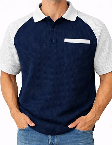 Herre Vaffel poloskjorter Med Tekstur Avslappet Ferie Aftæpning Kortermet Grunnleggende Moderne Fargeblokk Fargeblokk Knapper Vår sommer Blå Rød Navyblå Brun Grønn Vaffel poloskjorter
