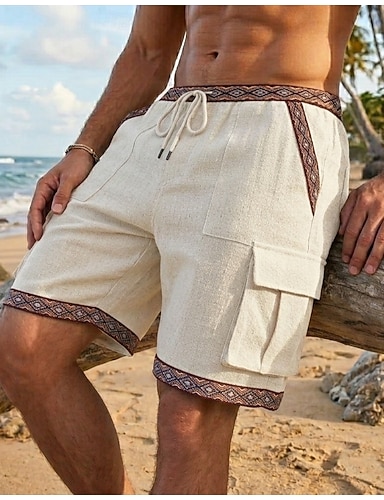 Herre Cargoshorts Lin Shorts Sommershorts Strandshorts Snorer Elastisk midje Veving عادي Lettvekt Pustende Knelengde Daglig utendørs Strand Ferie Mote Svart Beige Uelastisk