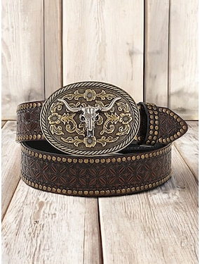 vestlig kunstskinnbelte for menn med gravert blomsterdesign og hodeskallespenne – vintage-stil cowboybelte for rodeo og fritidsklær