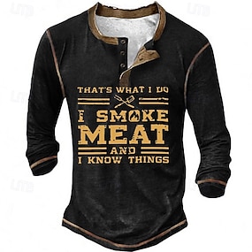 Herre Langermet Grafisk Henley Skjorte "Det Er Det Jeg Gjør Jeg Røker Kjøtt Og Jeg Vet Ting" BBQ Grilling Morsom Nyhet T-skjorte