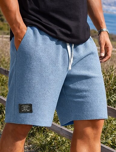 Herre Vaffel poloskjorter Poloskjorter Avslappet Gate Knaphul Kortermet Grunnleggende Moderne Stripet Lettvekt Knapper Sommer Vår Normal Hvit Kongeblå Grønn Kakifarget Lysegrå Vaffel poloskjorter