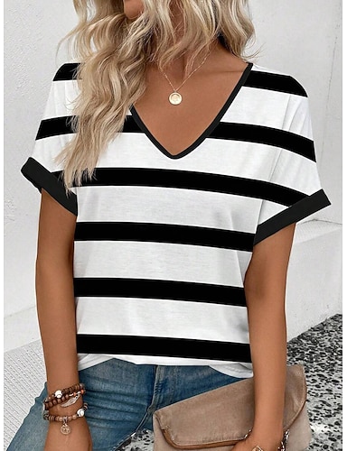 Dame T skjorte Trykt mønster Stripet Hjerte Grafisk Geometrisk Årgang Stilfull Klassisk Kortermet V-hals Vanlige topper Daglig Helg Ferieklær Svart Hvit Grønn Sommer Vår