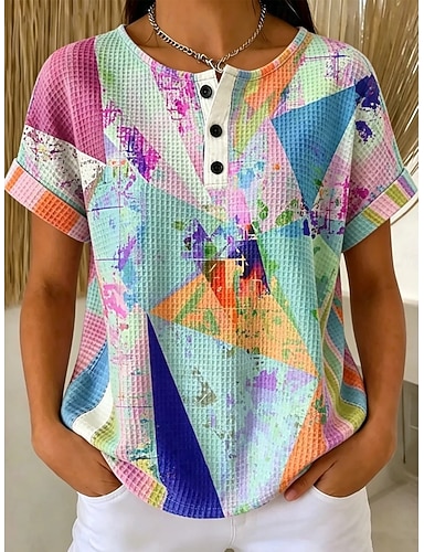 Damer Waffle T Skjorte Trykk Grafisk Geometrisk Abstrakt Vintage Stilfull Klassisk Kortermet Crew Neck Vanlige Topp Daglig Blå Gul Lilla Oransje Sommer Vår