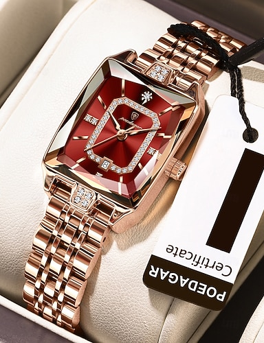 Morsdagsgave dameklokke, firkantet urskive i roségull med glitrende krystaller, vanntett kvarts armbåndsur i rustfritt stål, elegant klokkesmykke til kona, urskiver i flere farger