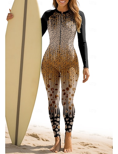 Dame Normal Rash-guard Helkroppsutslett Badedrakt Leopard hav med innebygd BH Forside Glidelås UV Solbeskyttelse Full Dekning UPF50+ Langermet Heldekkende Badetøy Surfing Kanopadling Strand Sommer