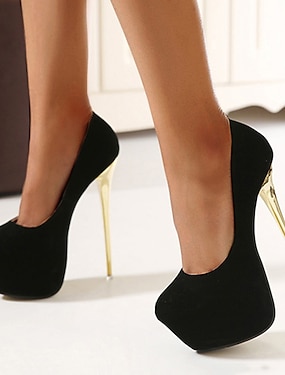 svarte plattformhøye hæler for kvinner – elegante stilettopumps i semsket skinn fra 1980-tallet for fester, bryllup og kveldsarrangementer