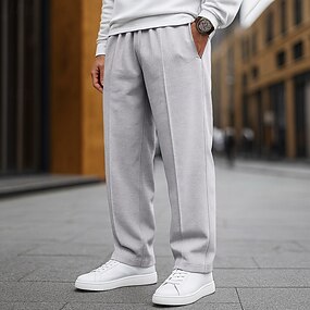 Herre Joggebukser Bukser Joggebukse med rett ben Vaffelbukser Snorer Lomme Elastisk midje عادي Komfort Myk Daglig utendørs Ferie Ferie Mote Svart Hvit Mikroelastisk