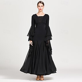 Ballroom-dans Kjole Kombinasjon Dame Trening Ytelse Langermet Netting Spandex Chiffon