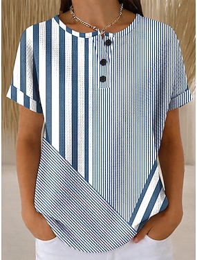 Dame T skjorte Trykt mønster Grafisk Stripet Årgang Stilfull Klassisk Kortermet Crew-hals Vanlige topper Daglig Blå Lilla Grønn Kakifarget Sommer Vår