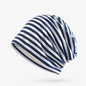 Unisex Beanie lue Strikk lue Svart Blå Bomull Reise utendørs Feriereise Stripet Vindtett Varm