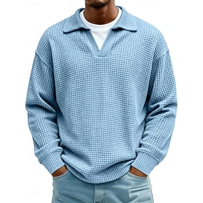 Herre Golf poloskjorter Vaffelstrikket poloskjorte Avslappet Virksomhet V-hals Langermet Mote Grunnleggende Helfarge Strikking Høst Vinter Normal Svart Hvit Lysegrønn Rød Navyblå Himmelblå Golf