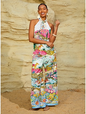 Summer Escape silkemyk sateng halterneck topp med blomsterprint
