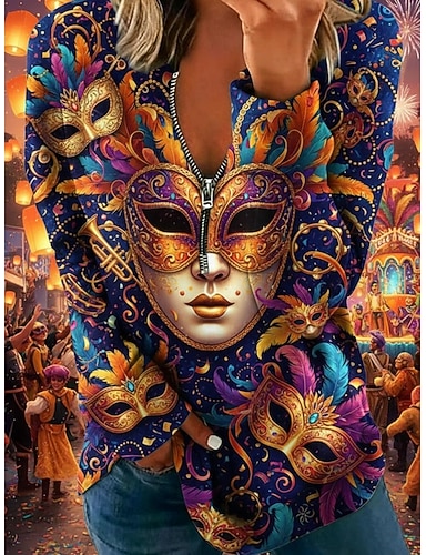 Dame Genser med genser Glidelås Lomme Trykt mønster Grafisk Årgang Fritid Langermet V-hals Vanlige topper Gate Hverdag Lilla Vår Høst