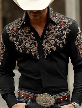 Herre Paisly Blomstermønster Etnisk Skjorte Western skjorte Cowboyskjorte Langermet Vintage retro Avslappet utendørs Arbeidstøy Vår Høst Aftæpning 3D-utskrift Skjorter med knapper Svart+ Khaki Svart