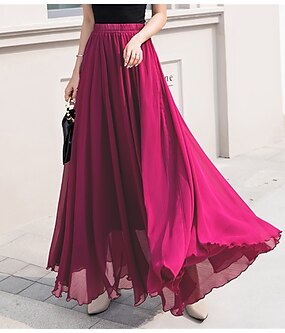 dameskjørt swing arbeidsskjørt langt skjørt maxi-skjørt chiffon ensfarget kontor / karriere daglig vår & sommer chiffon elegant lang s