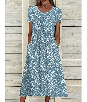 Dame Midi Kjole Blomster Prikket Lomme Trykk Crew Hals Daglig Date Korte Ermer Sommer Vår