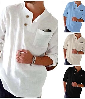 Herre Skjorte Linskjorte Uformell skjorte Skjorte med knapper Bomullsskjorte عادي Feriereise Ferie Svart Hvit Navyblå Kakifarget Langermet Båndkrage Sommer Vår Klær Lomme