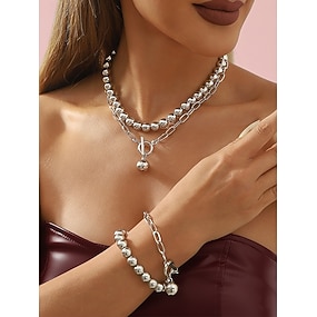 stilig kjede og armbånd med kulekuler i sølv – tykk lagdelt kjededesign med vippelås for et moderne og elegant utseende