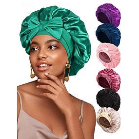 sovehette i silkesateng med sløyfe for kvinner – myk, komfortabel og stilig hårbeskyttelse, tilgjengelig i flere farger