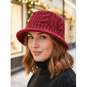 Julestrikk bøttehatt til dame, varm kabelstrikket vinterhatt til dame, myk og koselig lue i lue-stil for ferie, utendørs og fritidsbruk