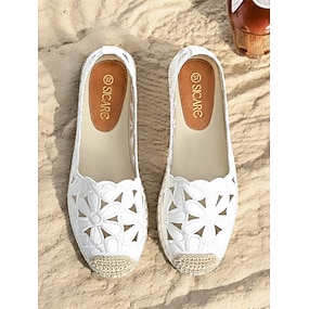 hvite espadrilleklær for kvinner – pustende slip-on loafers med blomsterutskjæring for sommer, strand og uformelle utflukter