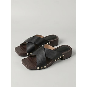 Svarte damesandaler med kryssremmer – komfortable brede blokkhæler for strandferier og sommerferieanlegg &utendørs uformelle arrangementer