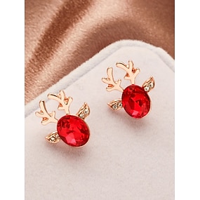 Julereinsdyrøreringer til dame - elegant design med rød krystall og sølvgevir til høytidsfester og festlige anledninger, tilgjengelig i flere farger