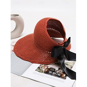 kvinners bred brem sammenleggbar stråsolhatt med svart sløyfe – elegant strandferie uv-beskyttelseshatt for sommerreiser og utendørsbruk