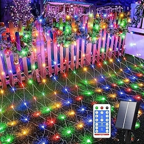 solenergi nett lys mesh fe string lys 6x4 880led ip65 vanntett krans med 8 moduser timer fjernkontroll for hage år plen ferie dekor fargerik belysning