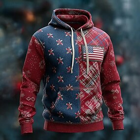 Jul Herre Amerikansk flagg Blomst / Planter Hattetrøje Mote Daglig Med hette Feriereise Fest Gateklær Rød Printer Høst Vinter Designer