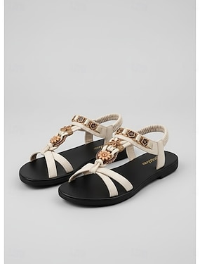 Damesandaler med flettede stropper i boho-stil – komfortable, flate sommersko med edelstener til strand, ferie og fritidsbruk
