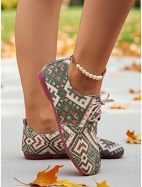 damesko med etnisk trykk og snøring, avslappet passform – komfortable lerretssko for hverdagsbruk, reiser, arbeid og utendørsaktiviteter