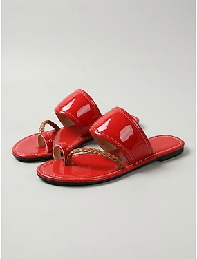 Røde sandaler i lakkskinn til dame – blanke, åpne slip-on-sandaler, lette, trendy sommersko for ferie, strand og fritid. &daglig bruk