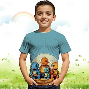 Gutt 3D Grafisk Drage T skjorte T-skjorte Kortermet Sommer Vår Mote Grunnleggende Barn 4-12 år Crew-hals utendørs Avslappet Daglig Normal