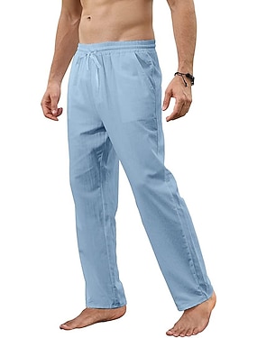 Herre Linbukser Bukser Sommerbukser Joggebukser Elastisk midje Rett ben Høydestigning Helfarge عادي Komfort Pustende Full lengde Bryllup Ferie Ferie Mote Blå Svart Elastisk