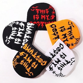 Herre Unisex Beanie lue Vinterhatter Luer 骷髅头毛线帽 Strikk lue Svart / Oransje Hvit Akryl Fiber Jacquard Strikket Koselig Halloween Dagligdagstøy Festival Bokstaver spindelvev Hodeskaller Varm